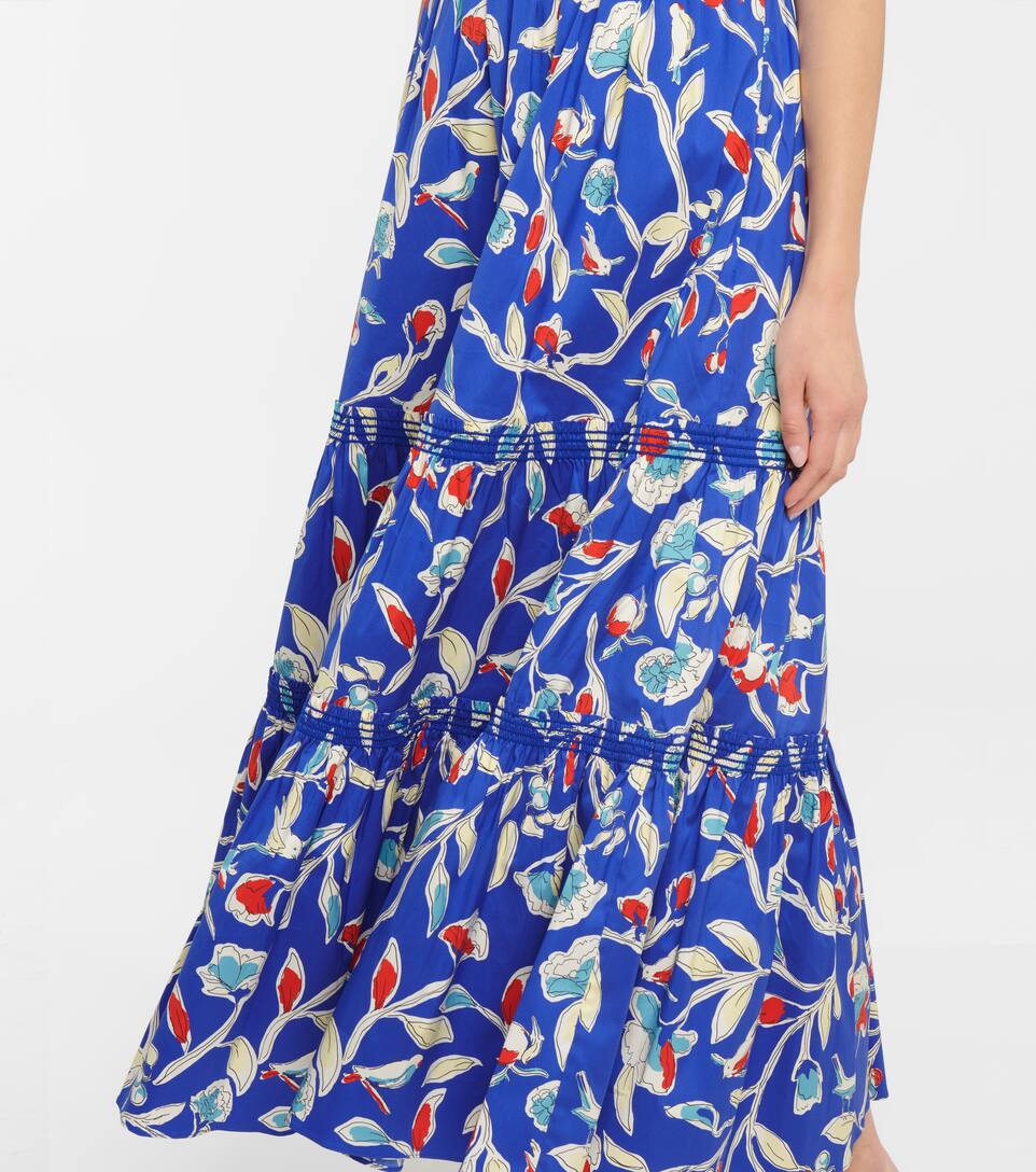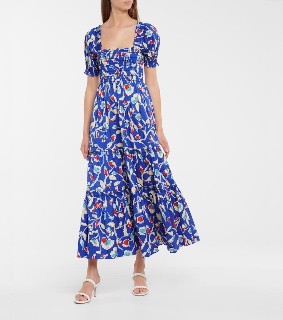 Tory Burch Floral Smocked Cotton Blend Midi Dress Shopstyle