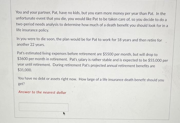 Solved You And Your Partner Pat Have No Kids But You Earn Chegg Com